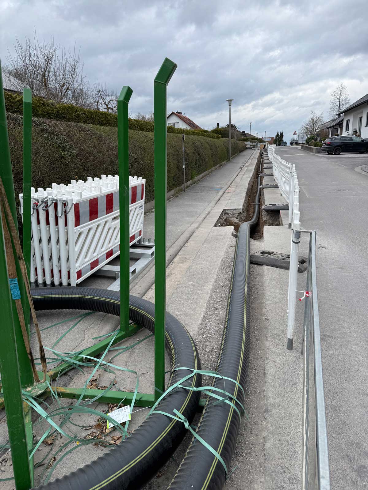Auch der Netzausbau schreitet mit schnellen Schritten voran. Aktuell wird vor allem im Bereich der Flurstraße und rund um den Kindergarten gearbeitet. Ein wichtiger Meilenstein, nämlich die Anbindung des Heizhauses an das Netz, soll in den nächsten Tagen realisiert werden.